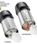 - 2 auswechselbare DIAMOND LASER CUT Reibscheiben: Flockenhobel und Feinreibe