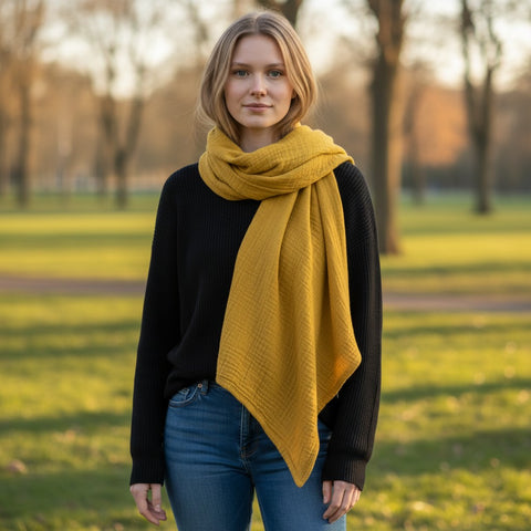 Musselinschal / Dreieckstuch XXL - Curry – Handgefertigt im Sauerland